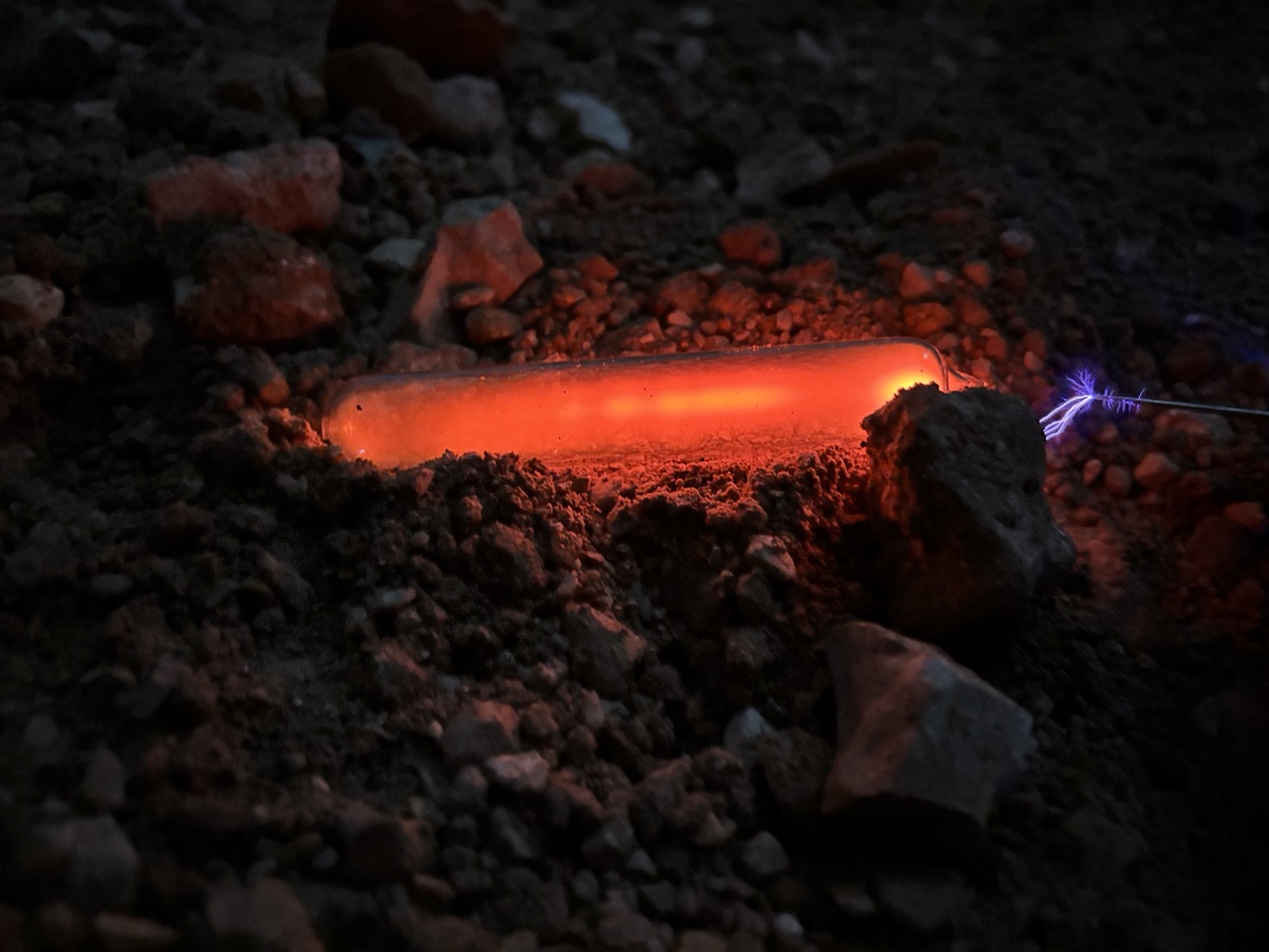 ריח של אדמה אדומה לחה מתגלה באור מהפנט של נורות ניאון. יצורים קטנים זוחלים לאט מאירים באורות זעירים את תוואי הקרקע. הזמן אחר, מזג האוויר אחר, העולם בתוך הגלריה אחר.
